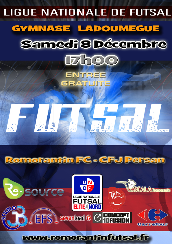 Pou le compte de la 7ème journée de Ligue Nationale de Futsal (LNFs), dernière de la phase aller, le Romorantin Futsal Club accueille le CFJ Persan (95) ce samedi 8 décembre à Ladoumègue, coup d’envoi 17h00. L’objectif est simple pour le club local, enchaîné une seconde victoire et dépasser au classement son adversaire du jour qui pointe à une longueur seulement.