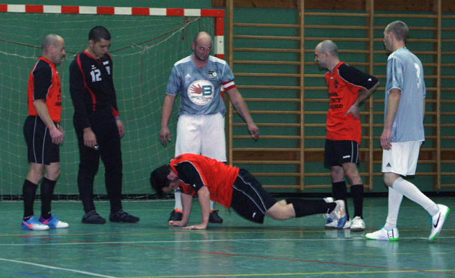 Non, ce n’est pas une erreur, Row figure bien parmi la liste des buteurs, dans un match qui a offert de très jolis buts aux spectateurs qui ont eu la sagesse d’attendre le bout de la nuit pour profiter du spectacle. Revigoré après leur courte défaite 4-3 face à FS 28, Futsal Piegosh se savait en mesure d’inscrire ses premiers points de la saison, surtout quand Galton inscrit le plus beau but de la soirée sur un retourné en pleine surface. Les locaux mènent jusqu’à 15 secondes de la mi-temps où Patator offrent l’égalisation à ses partenaires. Dans cette rencontre décousue, les deux équipes disposent d’opportunités et ne manquent pas de faire gonfler le tableau d’affichage. Il reste cinq minutes, et les deux formations sont dos à dos 4-4. Et c’est là que notre Rodolphe se rappelle au bon souvenir d’un entraînement en lobant du gauche le portier adverse de sa propre surface… La rencontre bascule puisqu’il reste moins de vingt secondes à jouer. Suffisantes pour permettre à Christophe d’inscrire un triplé, en spécialiste des contres… Victoire laborieuse mais précieuse où 6 joueurs différents ont inscrit un but !